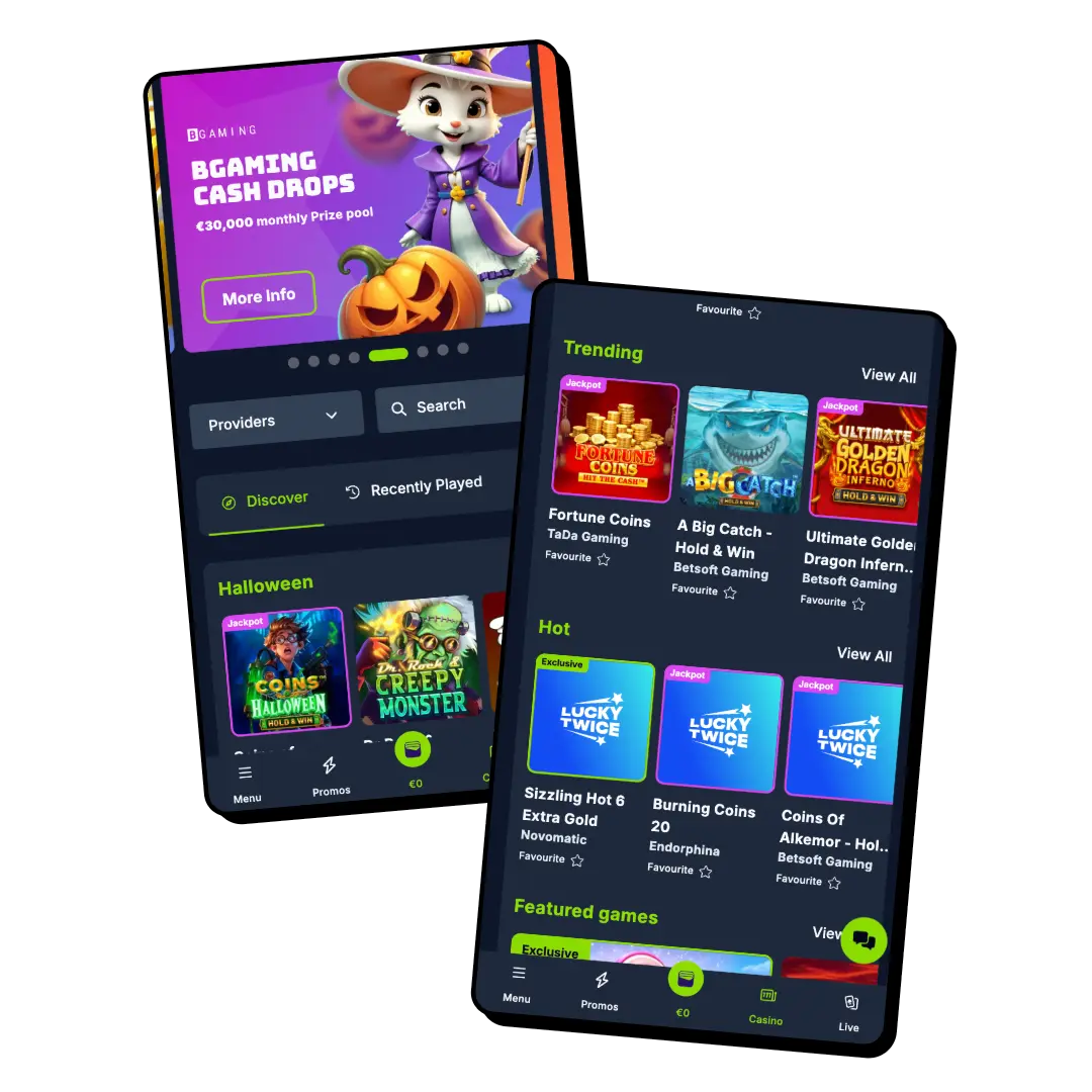 Our tool for mobile gaming was carefully crafted for easy use. When you launch the app, it automatically conforms to the size of your display screen for optimum performance. At the top, you’ll find the notification bell and your VIP status. This is followed by interchanging promotional banners before you get to our Providers tab and search function. Then, other casino links for Slots, Jackpot, Table Games, All Games are arranged.