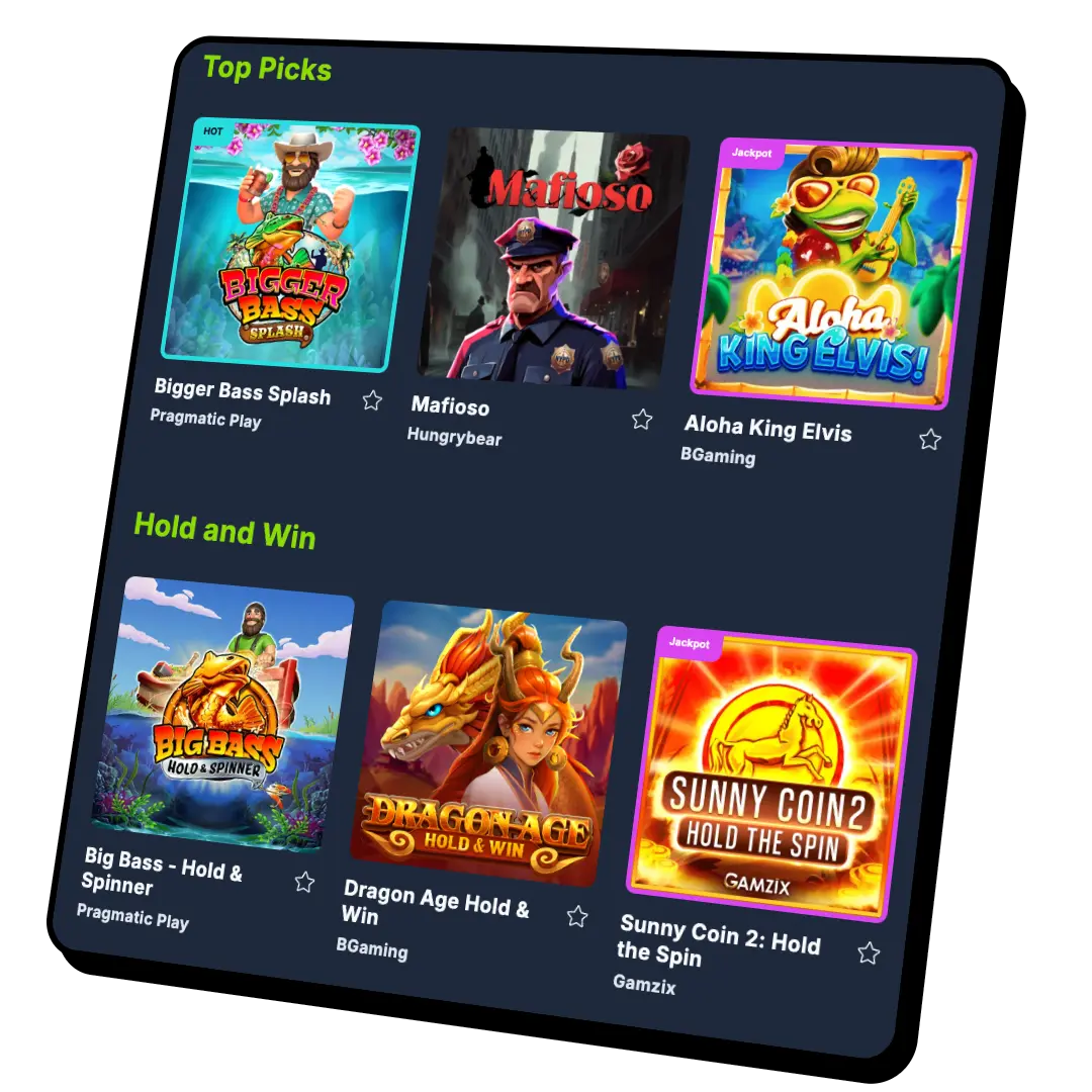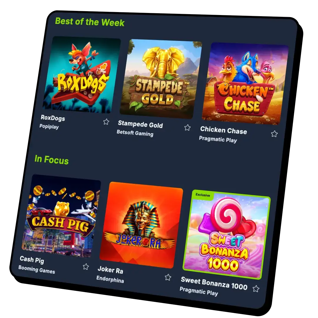 With a catalogue numbering more than 5,000 titles, we sought the help of specialists who are in the business of creating online casino games. In our lobby, you’ll find products from both well-known and upcoming brands. In total, we’ve collaborated with more than 60 studios. Some of them are:
